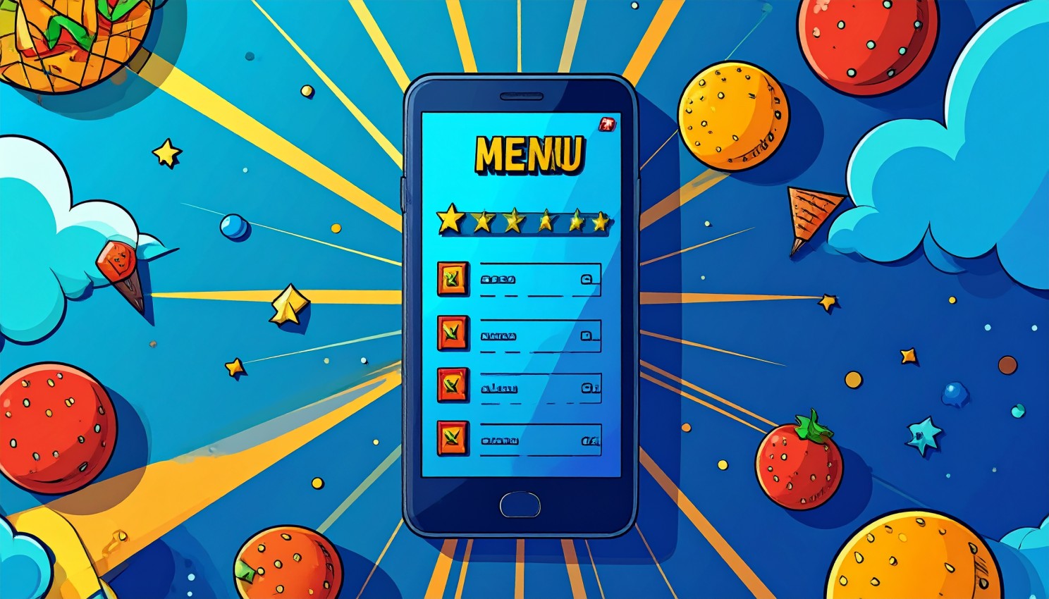 She gives me her phone. I know what to do. I push the pizza button - the one with the cheese dripping off.